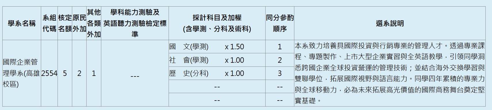 ★國際企業管理學系 : 1名