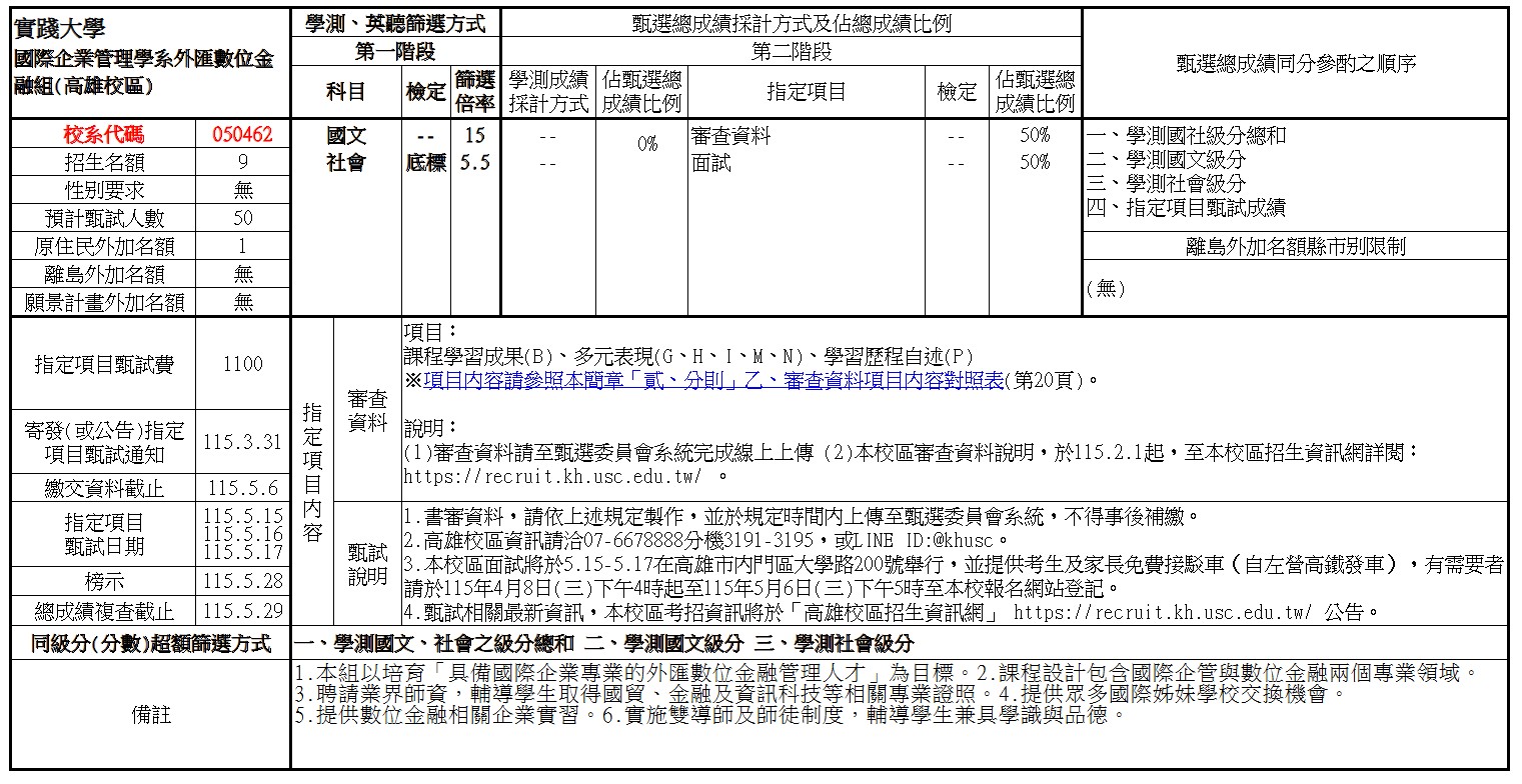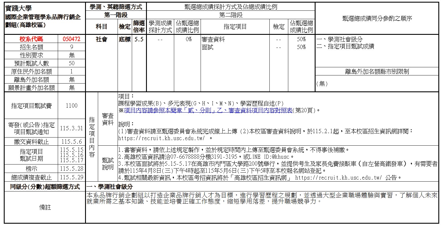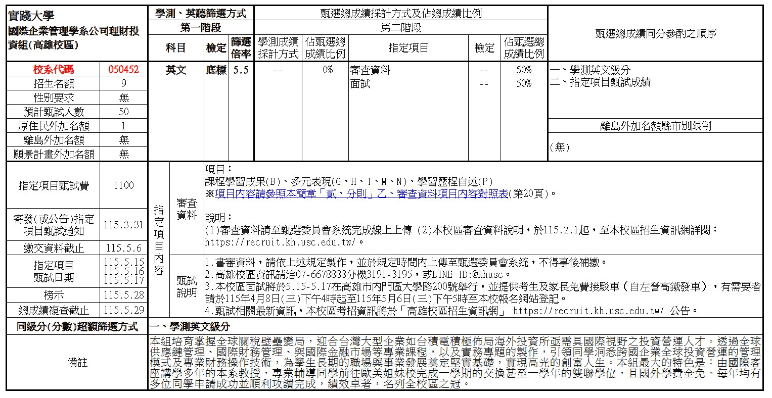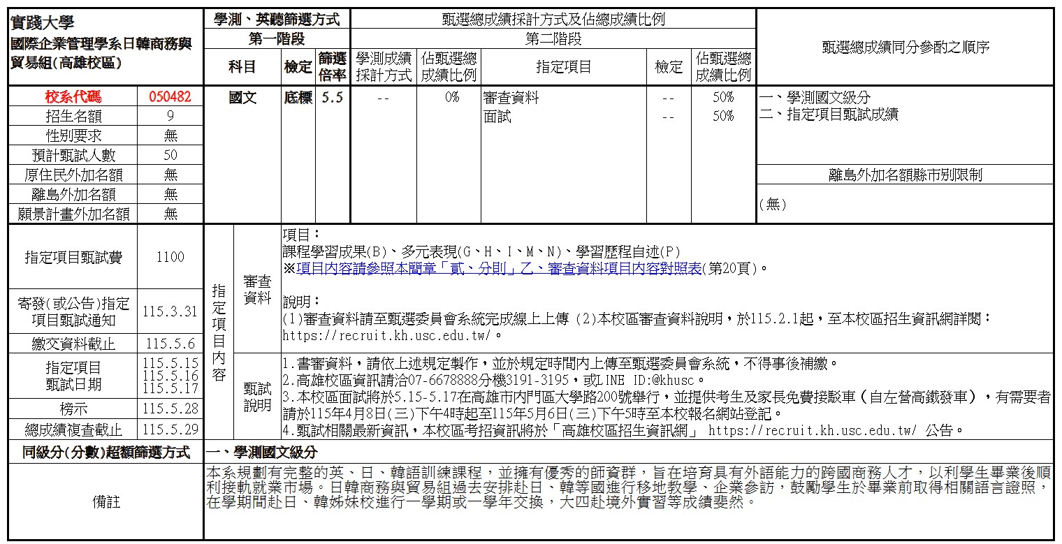 招生簡章:https://recruit.kh.usc.edu.tw/p/406-1012-52712,r269.php?Lang=zh-tw