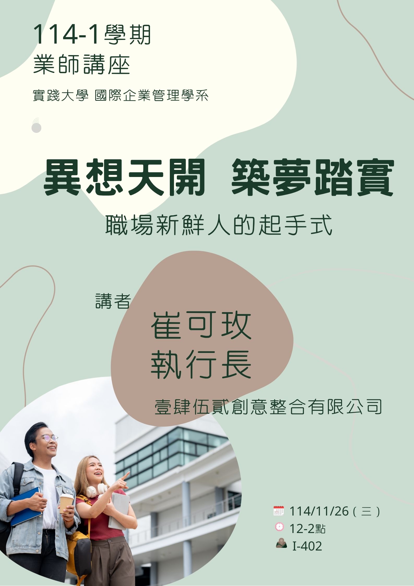 114-1【職涯講座】 職場新鮮人的起手式:從異想天開到築夢踏實