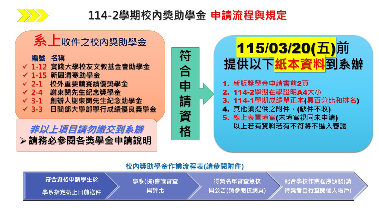 114-2 學期-校內獎助學金申請(系上收件說明)