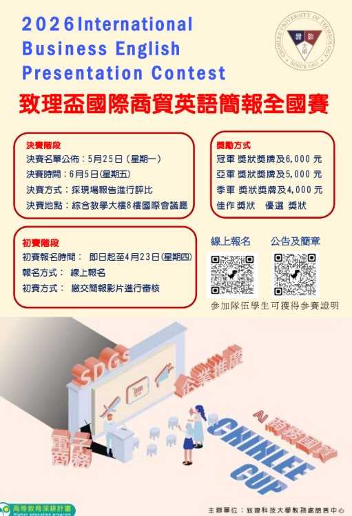 「2026致理盃國際商貿英語簡報全國賽」競賽相關資訊如下: